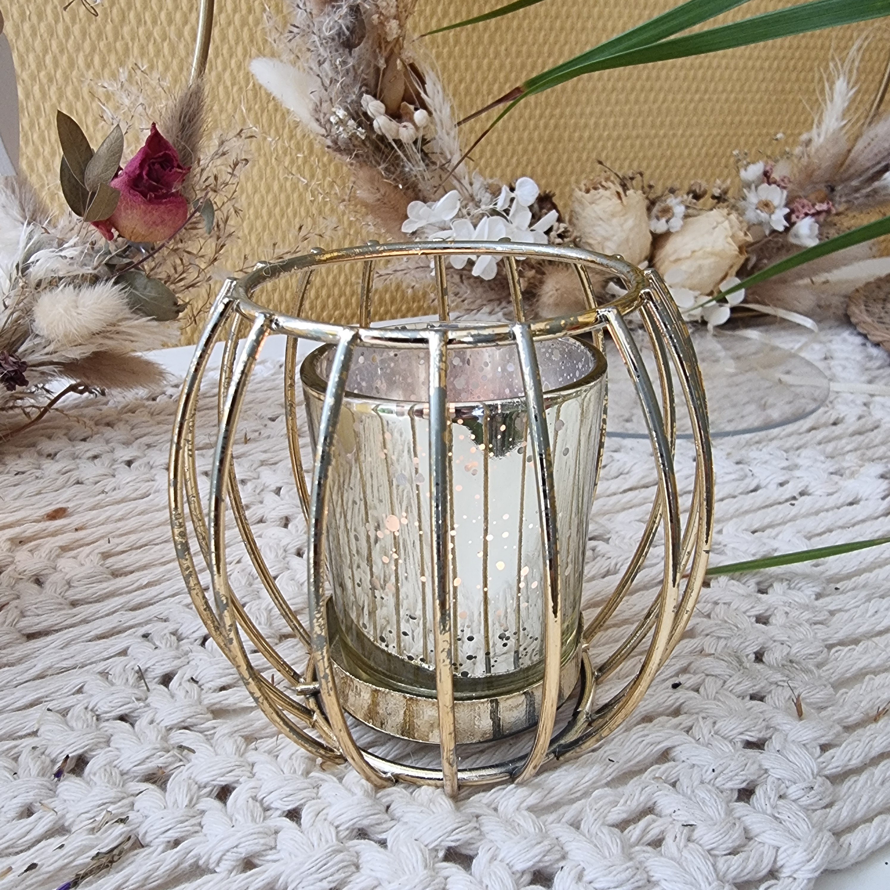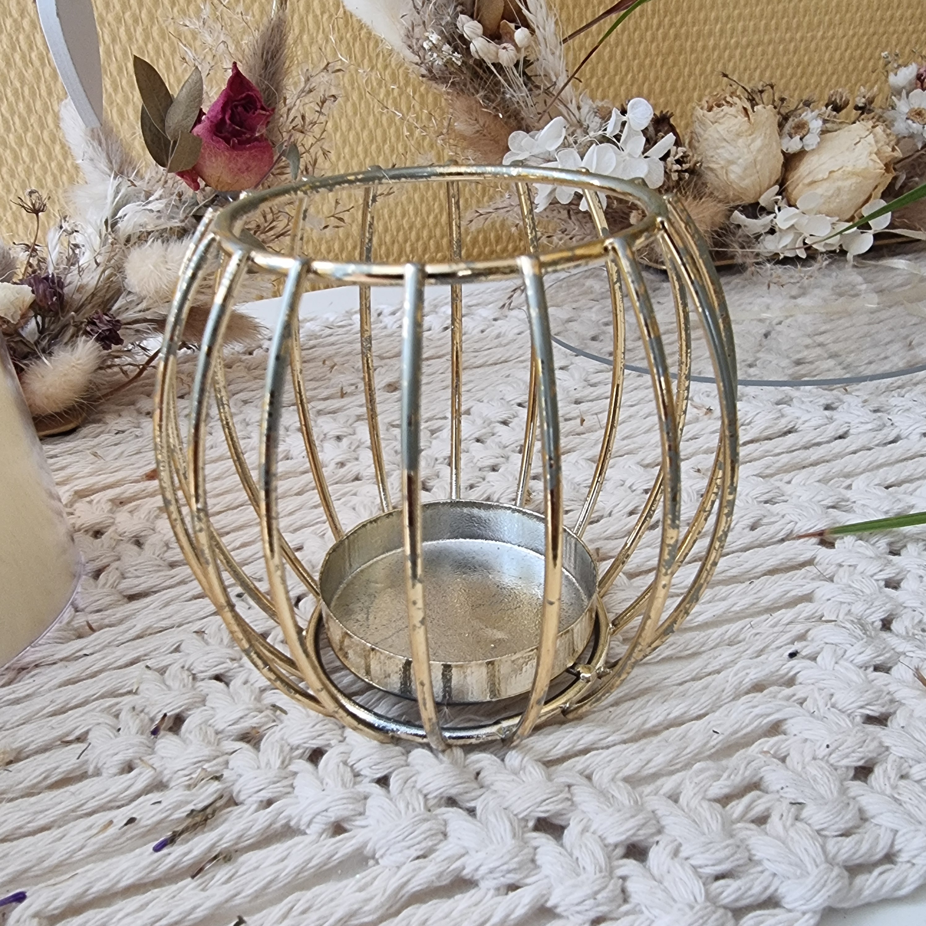 Kleiner Teelichthalter aus Metall gold.