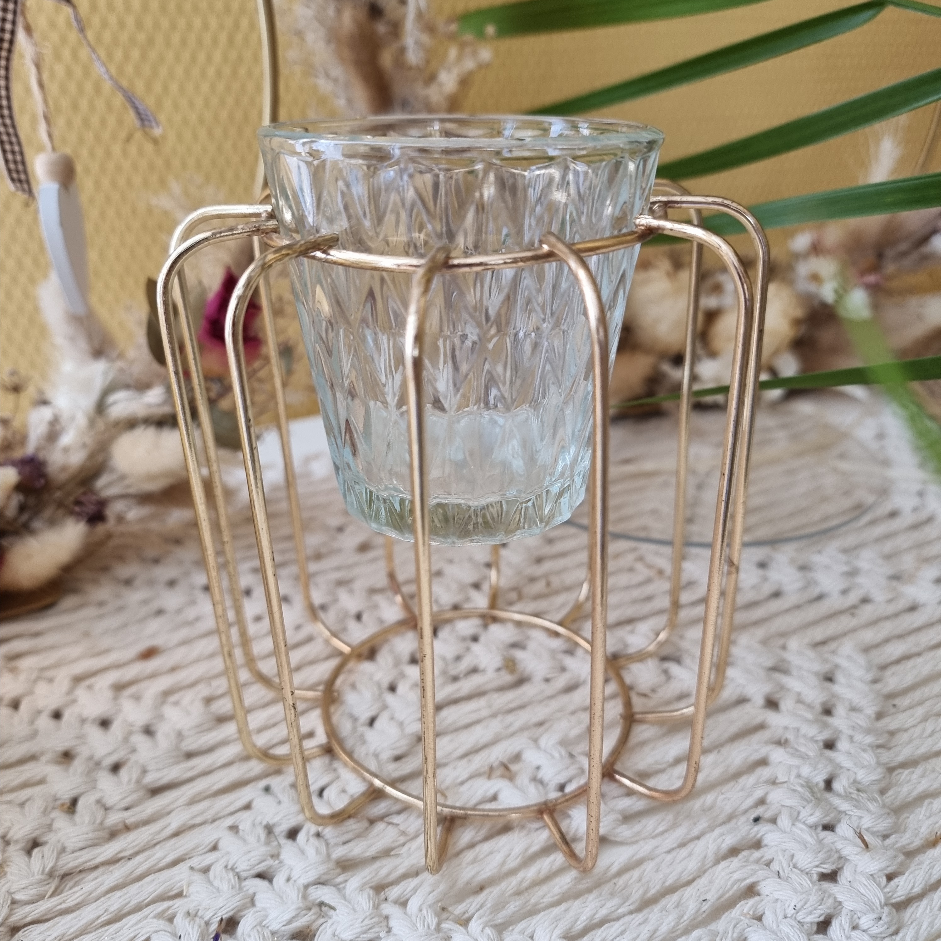 Teelichthalter aus Metall gold mit Glaseinsatz für Teelicht oder kleine Kerzen.